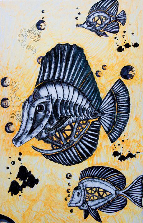 mechanical fish done with sharpie and ink